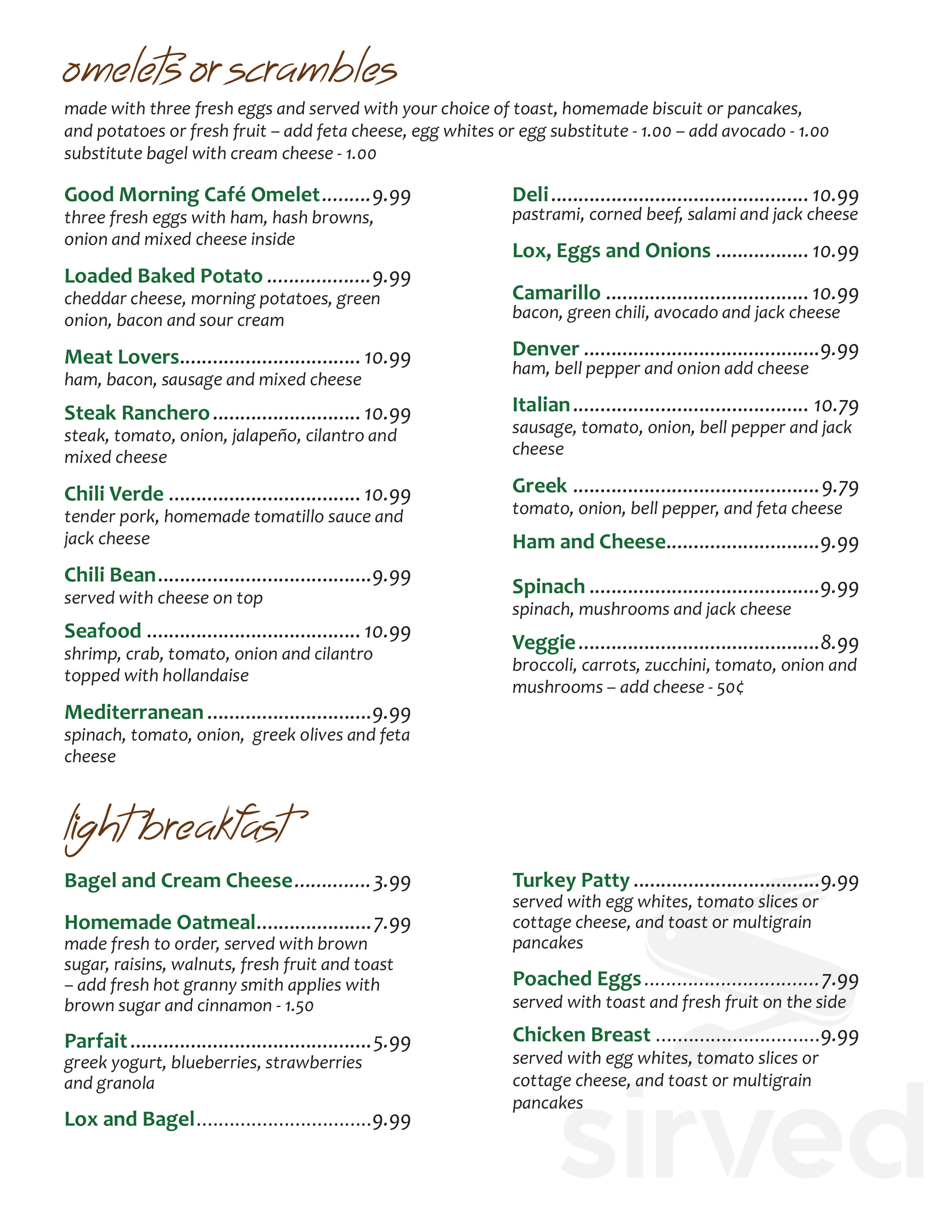 Good Morning Cafe Menu In Camarillo California Usa